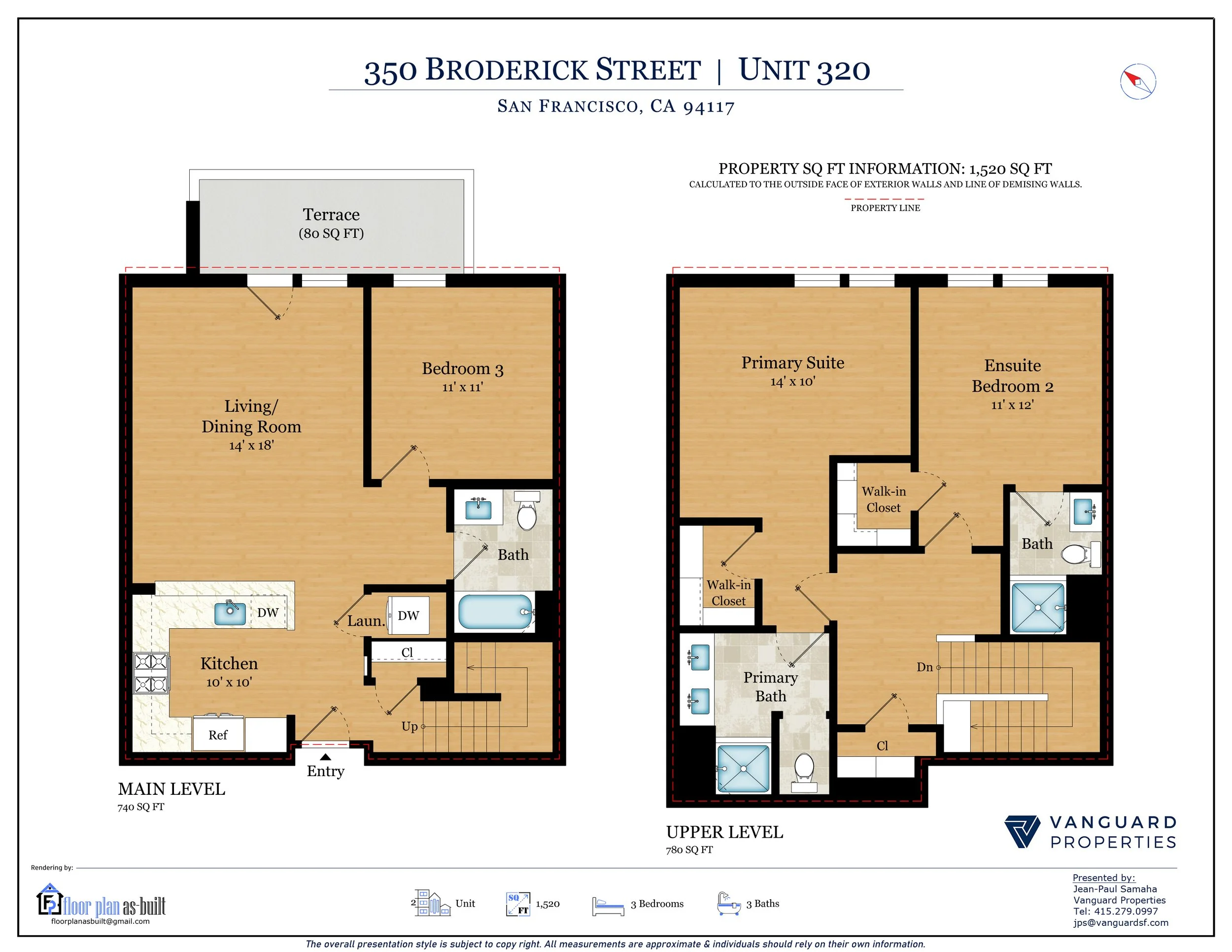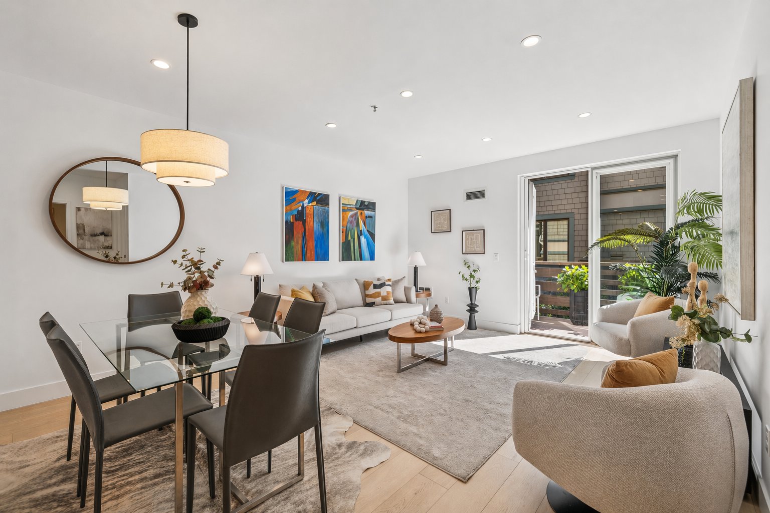 Welcome to Residence 320 at Broderick Place—an elevated, house-like condominium offering the scale and livability of a single-family home in the heart of NOPA. This expansive two-level residence features one of the largest floor plans in the building, with 3 bedrooms and 3 bathrooms, including two ensuite retreats. Designed for modern living, the open-concept layout seamlessly connects living, dining, and entertaining spaces, extending to a private balcony for effortless indoor-outdoor enjoyment. Recently renovated with upgraded lighting, smart home features, and beautiful new wood floors, the home offers both comfort and sophistication. The building includes elevator access, deeded parking in a secure garage, and the convenience of Falletti Foods, Peet’s Coffee, and Nopalito just downstairs. This home presents a rare opportunity for space, style, and lifestyle—without compromise.